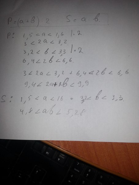 4)Оцените периметр и площадь прямоугольника со сторонами а см и в см, если известно, что 1.5 <a<1.6 ; 3.2<в<3.3