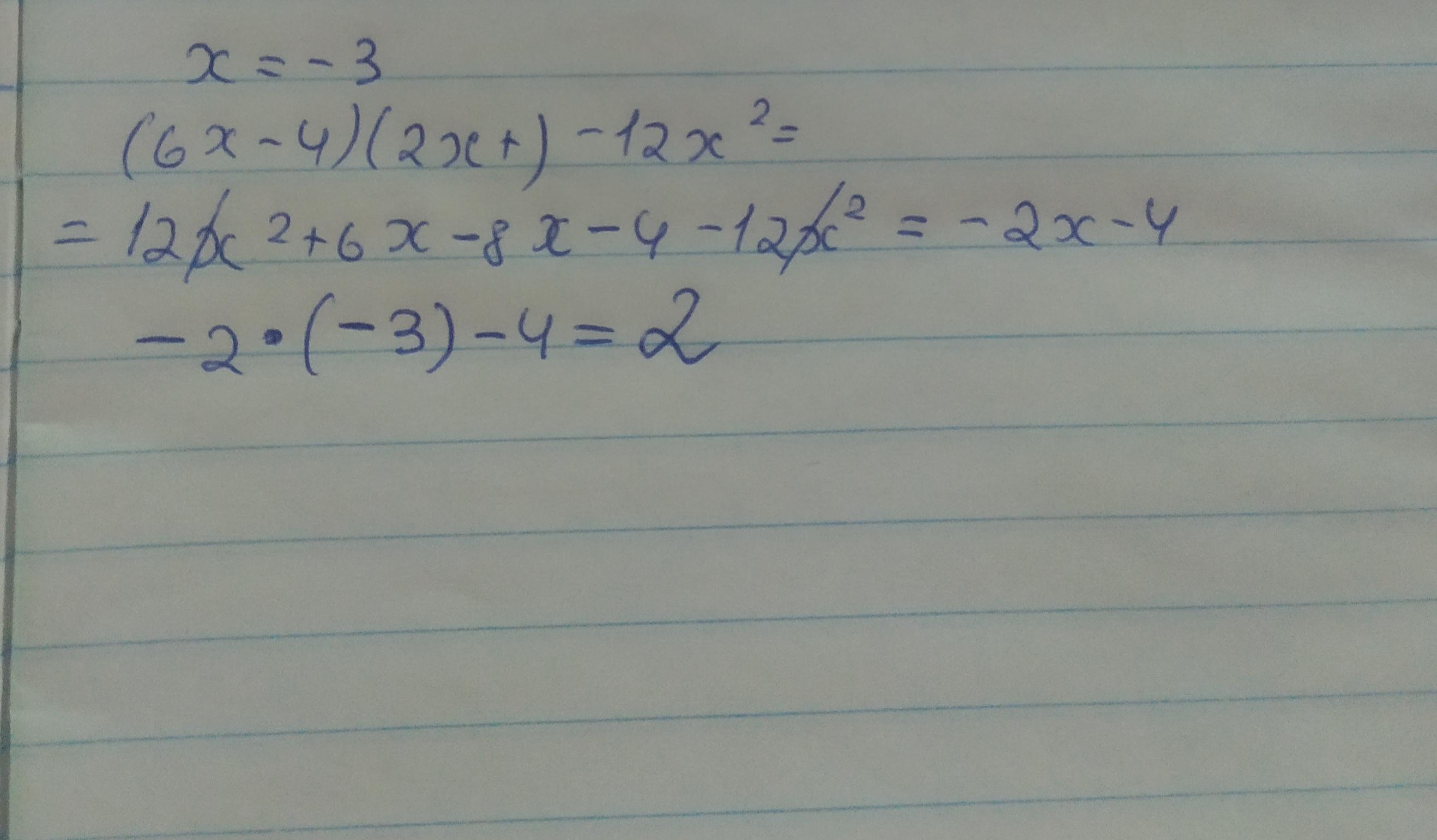(6x-4) (2x+1) - 12х^2, якщо х = -3