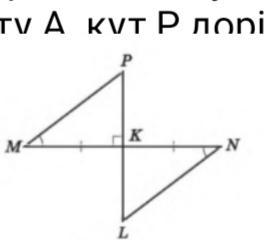 на малюнку МK=NK, кут PMK= куту LNK, кути PKM і LKN вертикальні, а отже рівні.