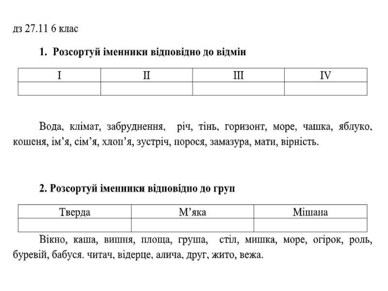 2 відміна: клімат, горизонт, яблуко, ім'я, сім'я.