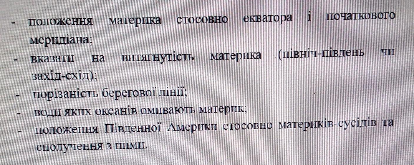 Отже, Південна Америка є великим материком, що має вражаючу берегову лінію, що розмежовується від інших материків великими водними ділянками.