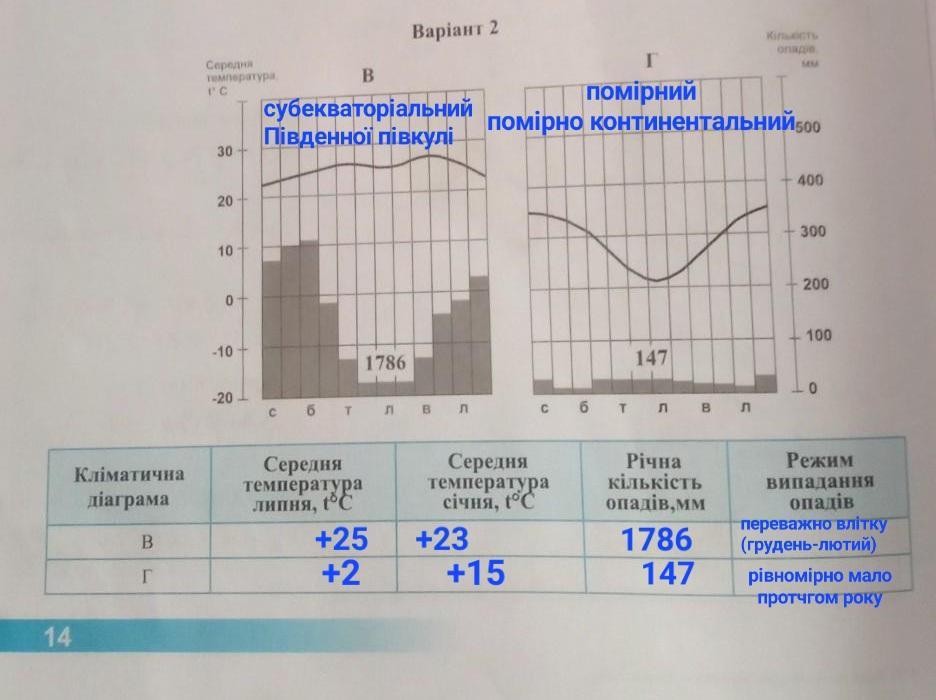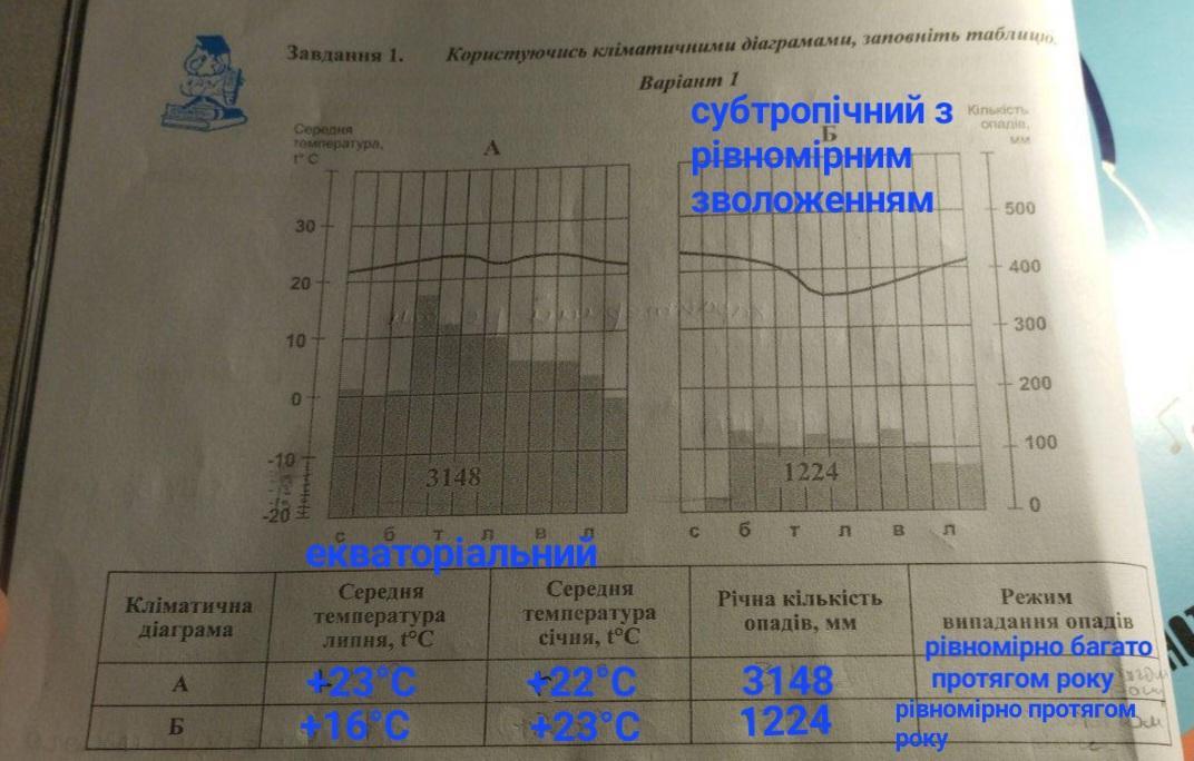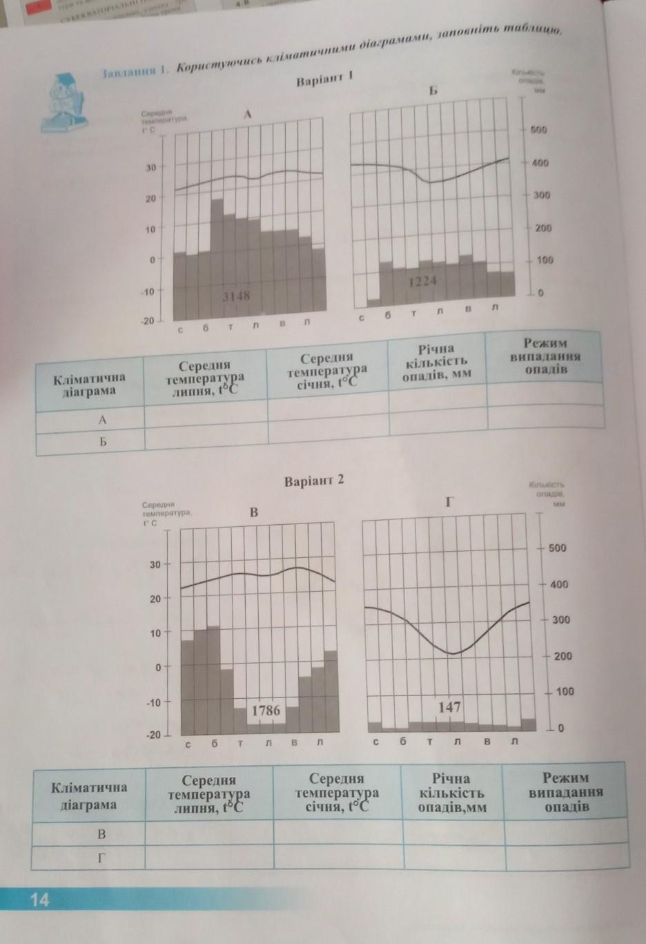 Користуючись кліматичними діаграмами, заповніть таблицю.