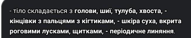 .тіло складається з голови, шиї, тулуба, хвоста,