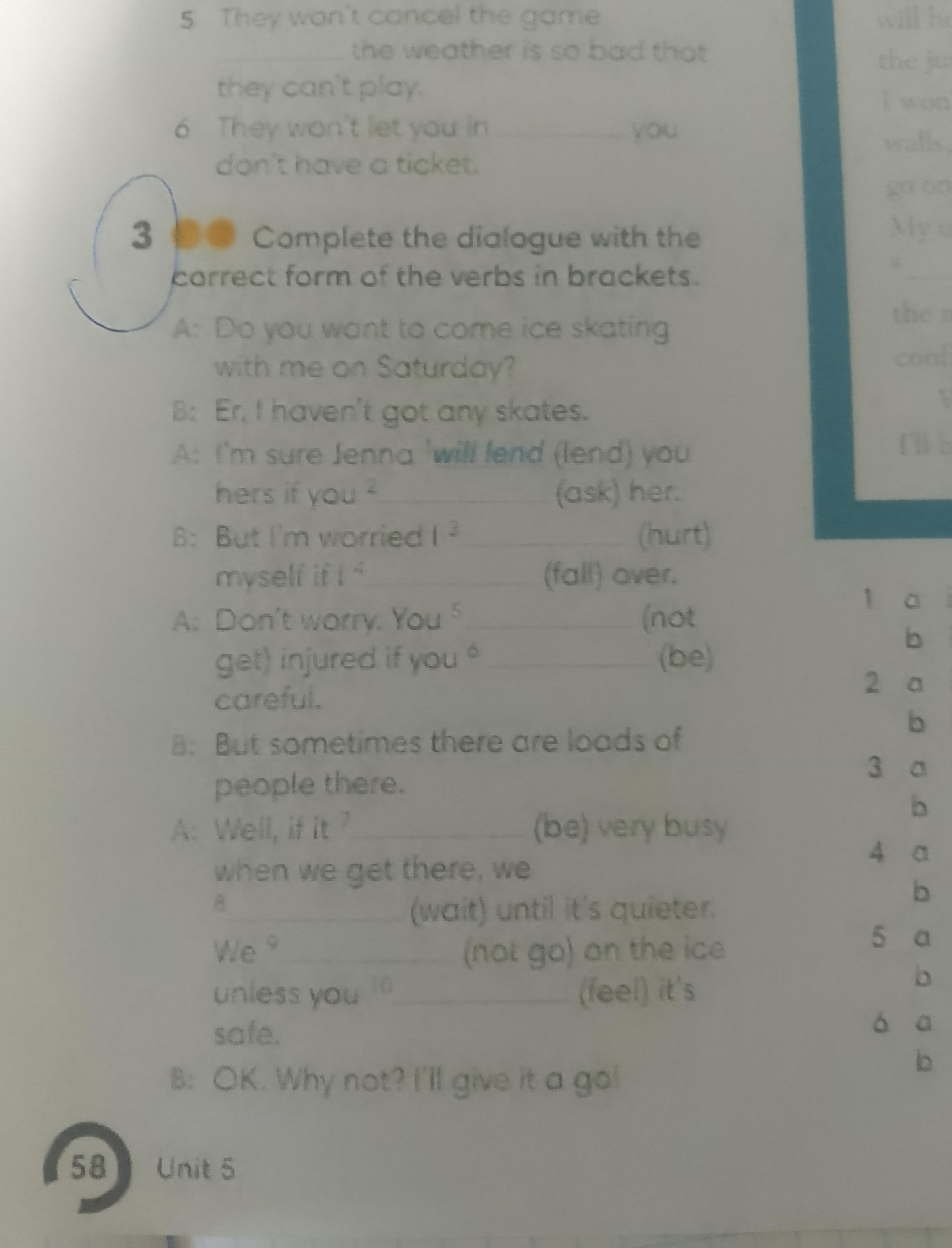 A: Well, if it **is** very busy when we get there, we **should wait** until it's quieter before we **go** on the ice unless you **feel** it's safe.