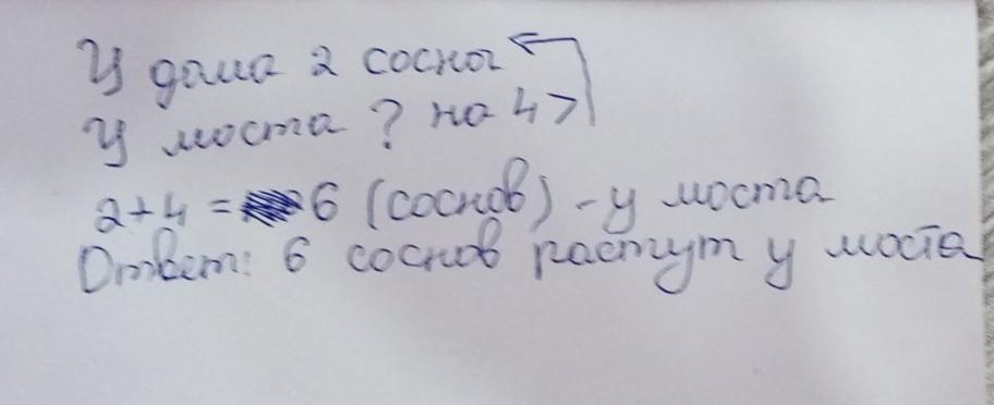 у дома росла 2 сосны у моста на 4 больше у моста 6 всено росло 8 сосен