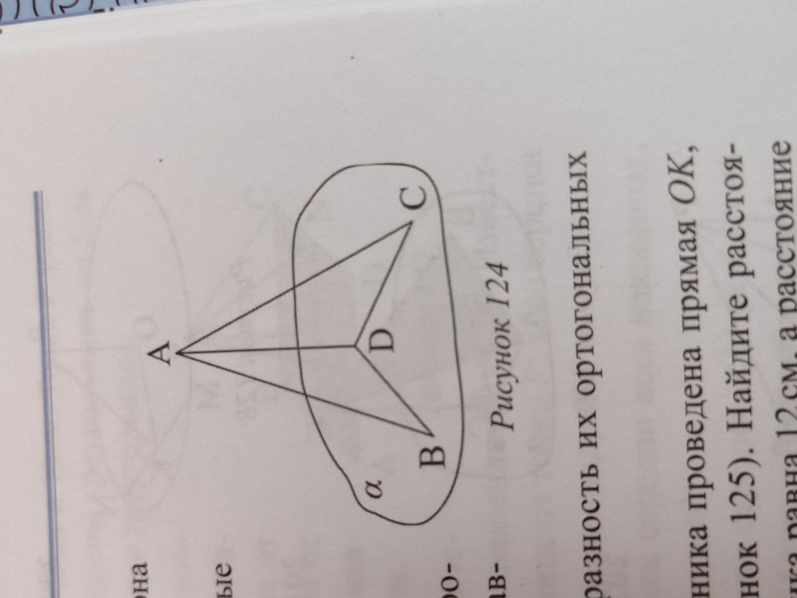 на рисунке 124 прямая AD перпендикулярна плоскости a. Найдите длину отрезка AD, если: AB:AC=10:17, а ортогональные проекции этих наклонных на плоскость a равны 12 см и 30 см