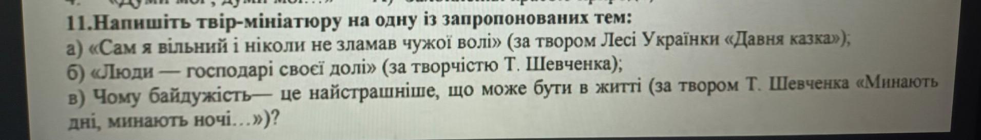 «Чому байдужість це найстрашніше, що може бути в житті» (за твором Г. Шевченка «Минист дні, минають ночі»):
