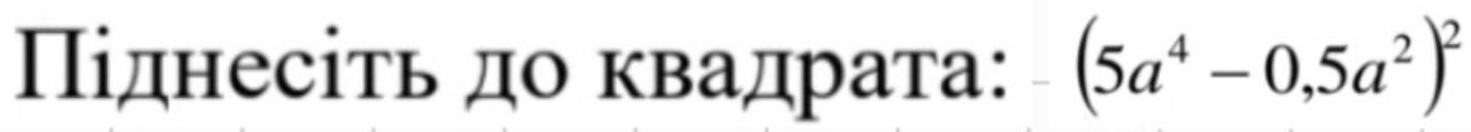 (5a⁴-0,5a²)² = 5a⁴*²-0,5²*²=5a⁸-0,5⁴=390625-0,0625 =390 624,938