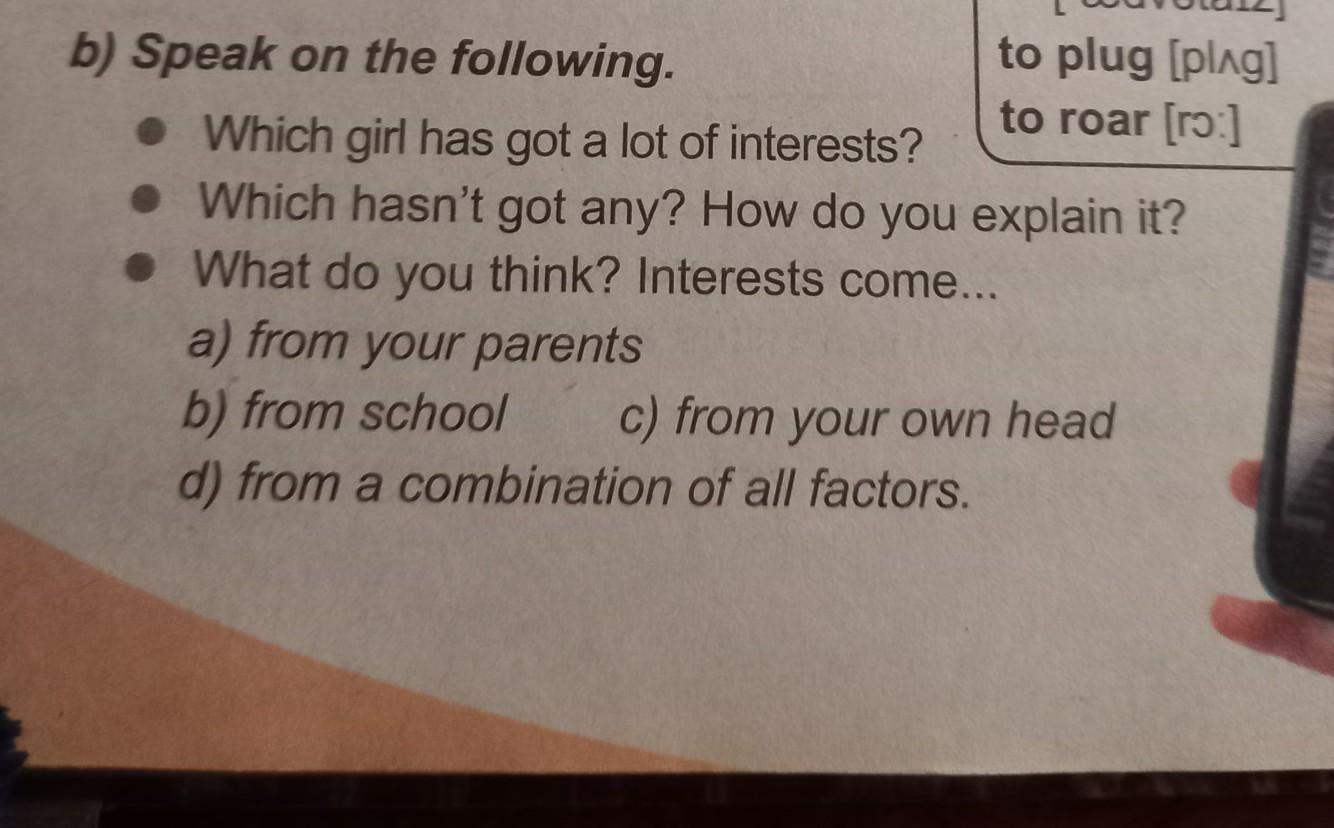 Ответ: с) From your own head - це означає те, що інтереси приходять з твоєї голови.