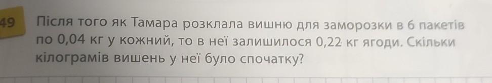 Відповідь: В Тамари спочатку було 0,46кг або 460грам вишень.