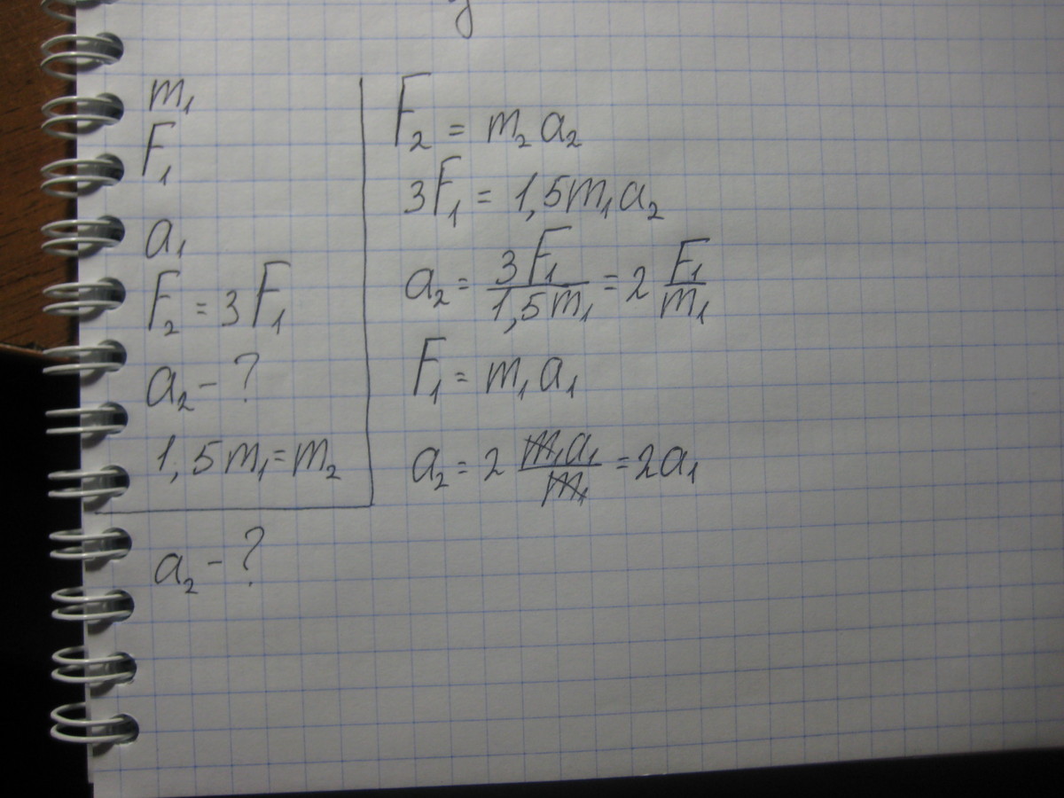 2) Под действием силы F1 тело массой m1 движется с ускорением a1 под действием силы F2, равной -3F1, с каким ускорением (a2) движется тело массой 1,5m?