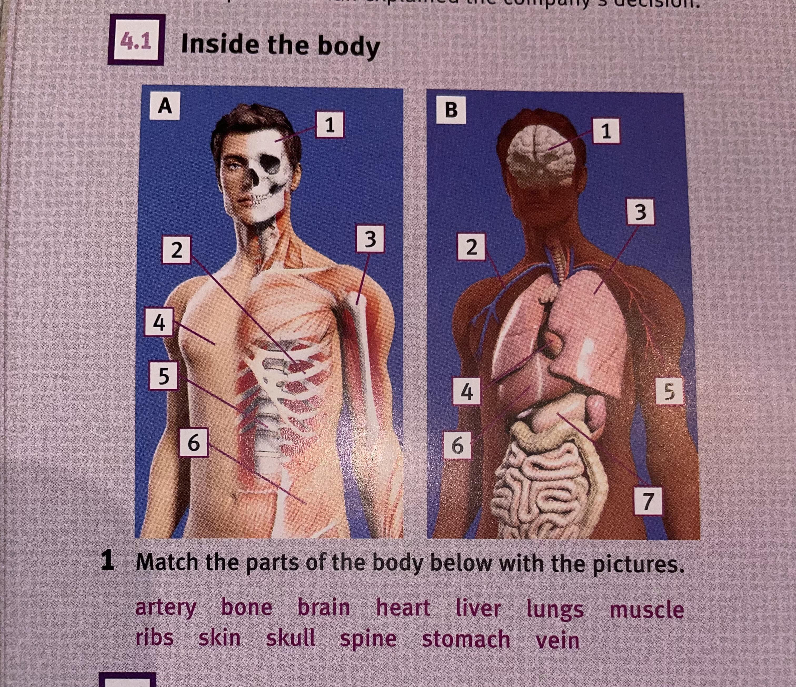 1 brain, 2 vein, 3 lungs, 4 heart, 5 artery, 6 liver, 7 желудок