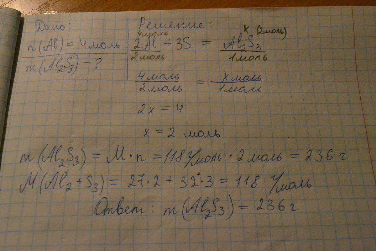 помогите! вычислить массу сульфида алюминия полученного при взаимодействии 4 моль алюминия с серой.
