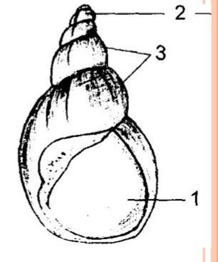 1)Розгляньте черепашку ставковика. Знайдіть такі елементи будови: верхівка, устя, завитки.