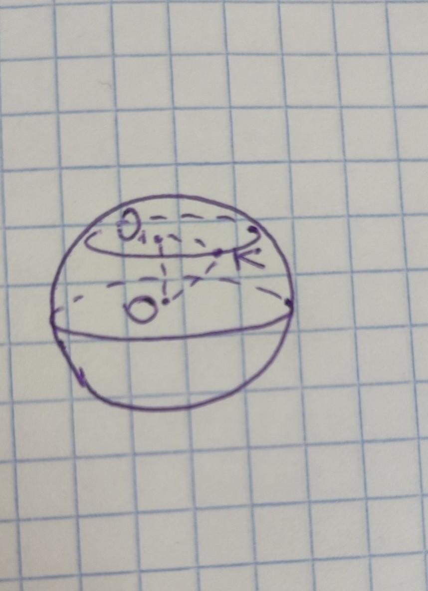 за теоремою Піфагора відстань від точки К до центра кулі =√16-9=5см
