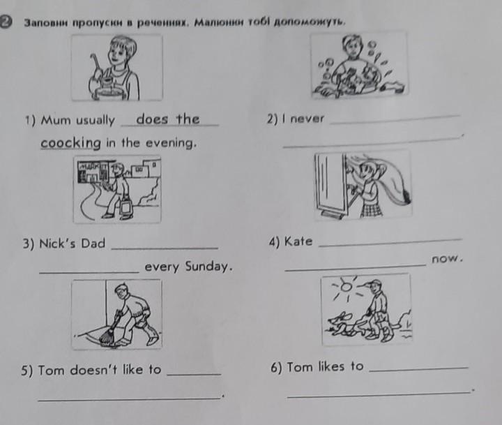 5) Tom doesn"t like to sweeping the room