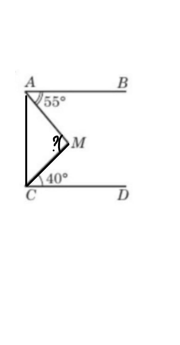 Оскільки прямі АВ та СД паралельні, можемо провести перпендикулярний відрізок АС, який утворить трикутник AMC.