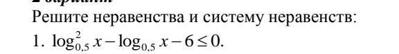 Log0,5(x) больше равен -2 отсюда следует что х меньше равен 4
