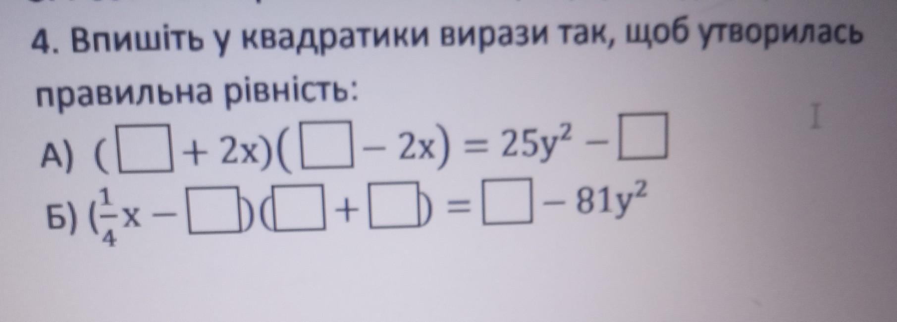 4. Впишіть у квадратики вирази так, щоб утворилась правильна рівність:СРОЧНО!!!ДАЮ 100 БАЛОВ!!!