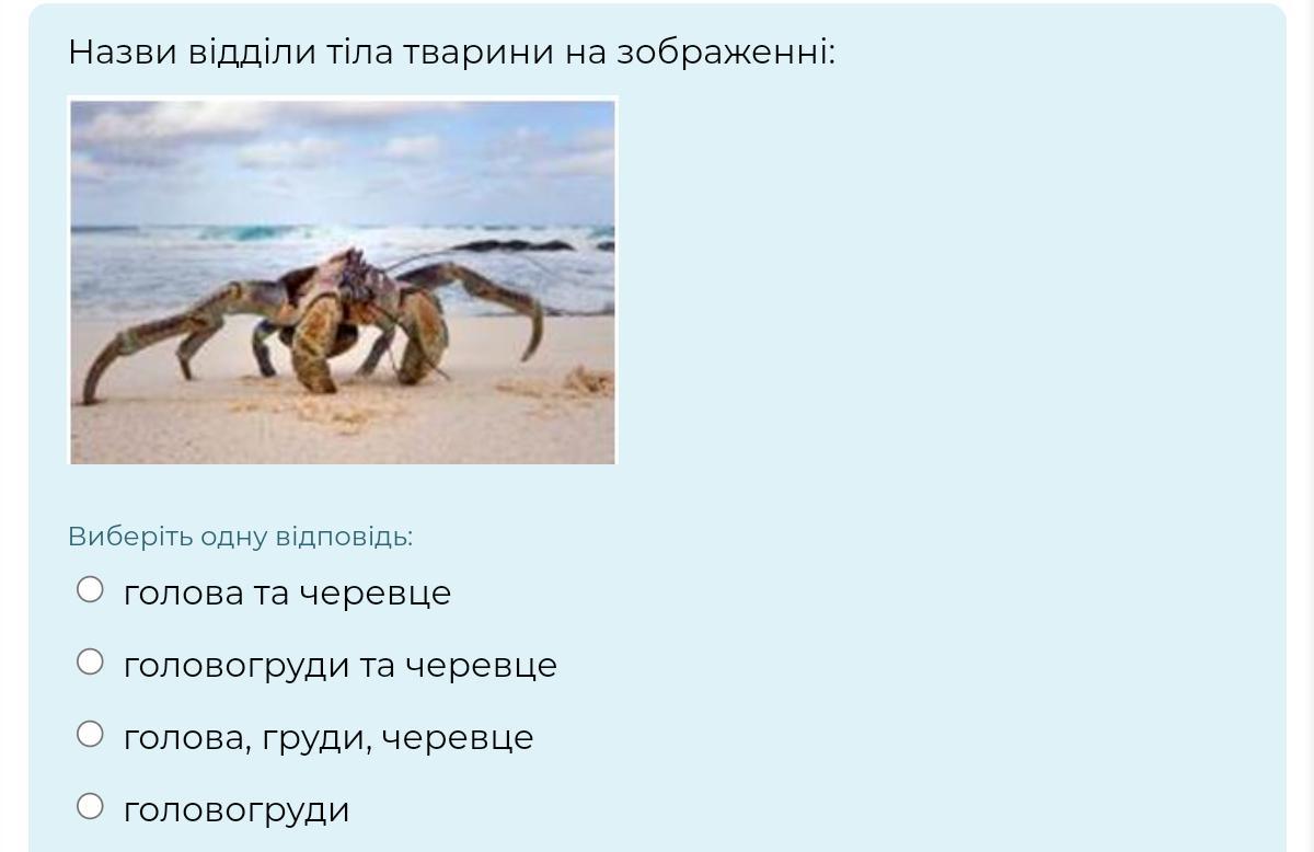 Головогруди і черевце є тільки у павукоподібних або членистоногих, а це краби, скорпіони, павуки і т.д.