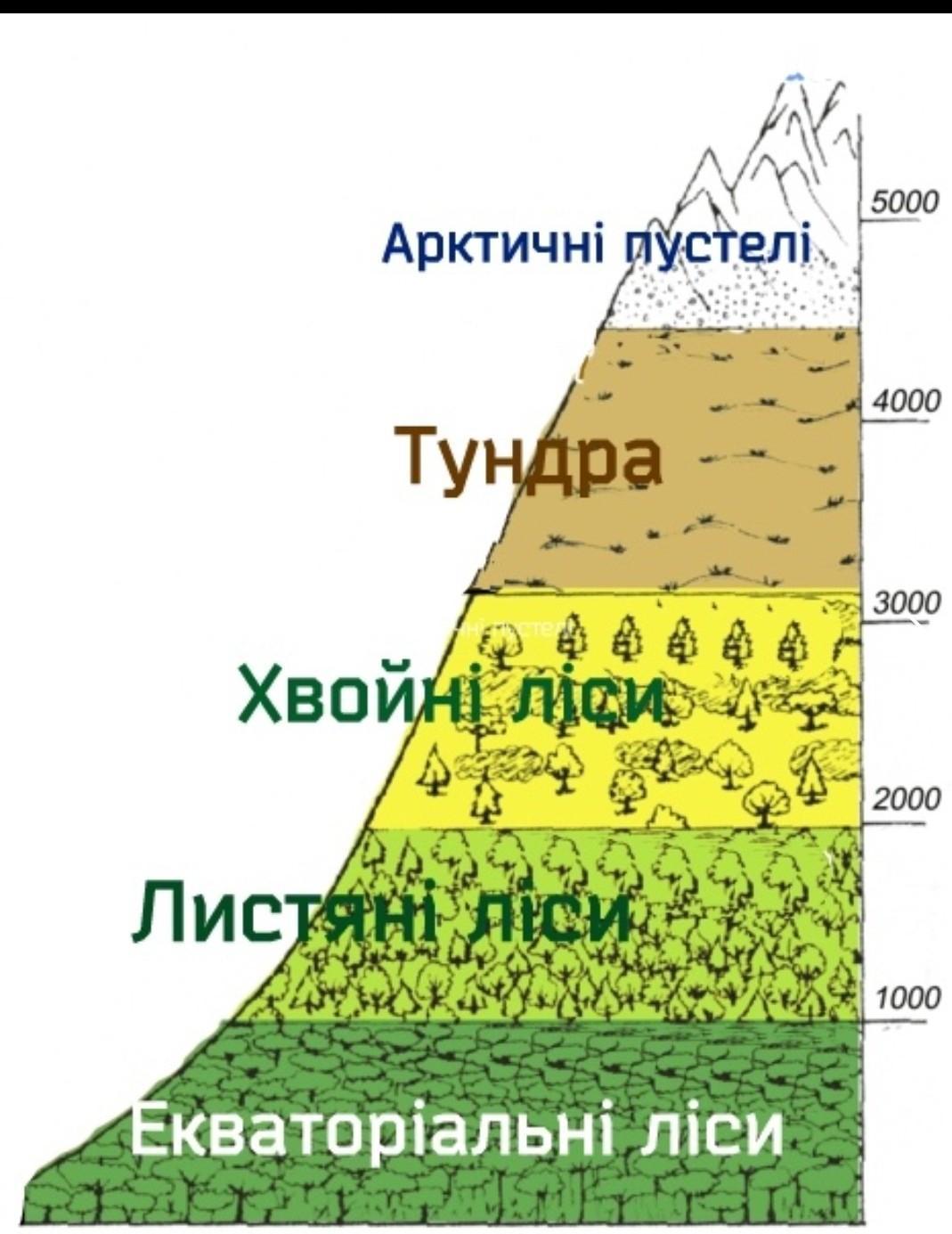 9. Підпиши на схемі висотні пояси Анд, послуговуючись текстом на с. 39. Наведи Наведи приклади рослин, типових для двох нижніх висотних поясів.
