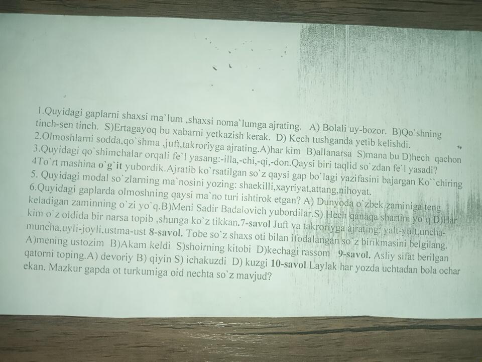 Объяснение:100 ball berasan.Qiynalib topdim javoblarini.