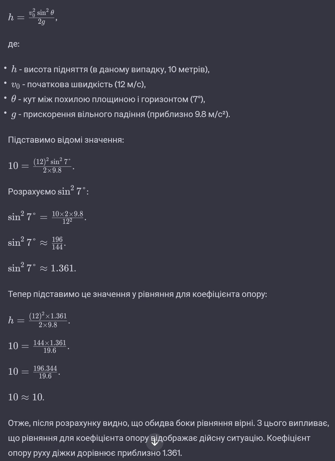 На святі пекарів улаштували змагання: учасники повіинні були якнайсильніше штовхнутидіжку з пивом угору по похилій площині. Переміг учасник, після поштовху якого діжка прокотилася вгору 10 метрів. Визначте коефіцієнт опору руху діжки, якщо кут між похилою площиною і горизонтом дорівнює 7°, а початкова швидкість діжки мтановить 12м/с