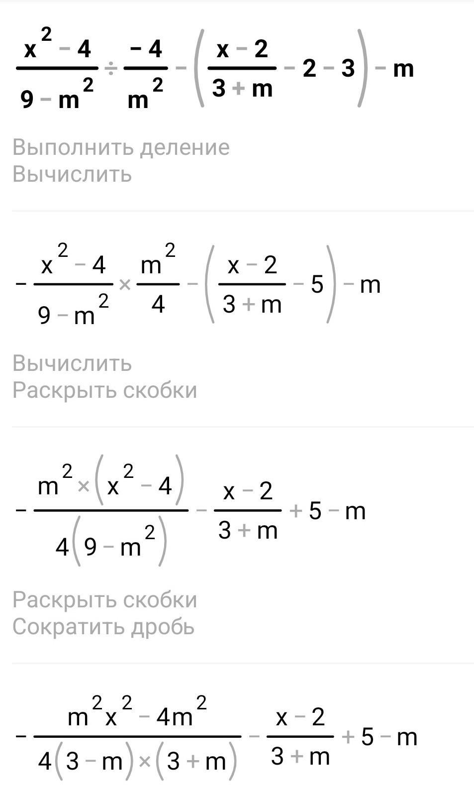 5. Спростіть вираз: (x ^ 2 - 4)/(9 - m ^ 2) : - 4/(m ^ 2) / ((x - 2)/(3 + m)) - 2 3- m дою 40 балів
