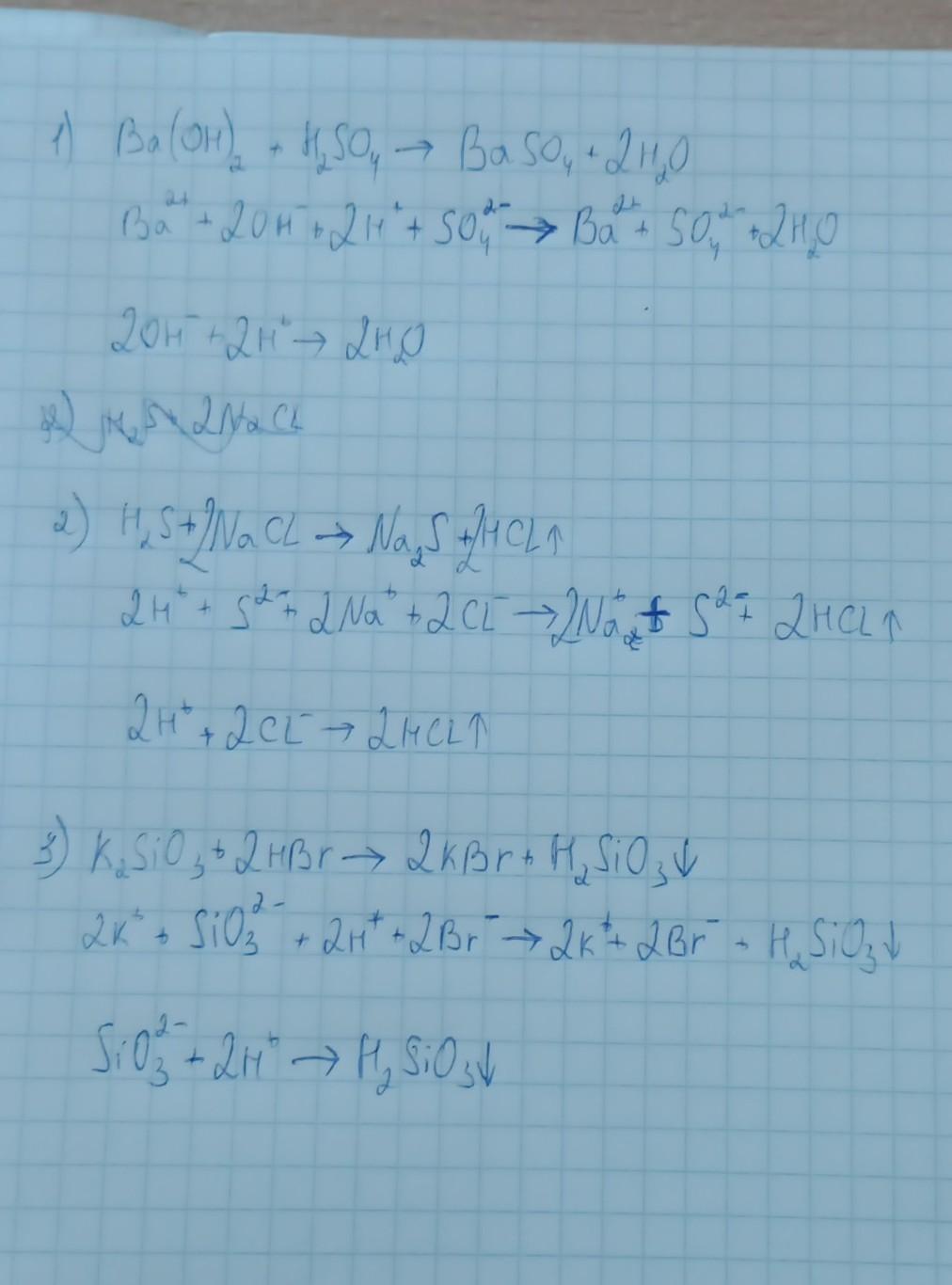1.Запишіть рівняння в повній та скороченій йонно-молекулярній формах Ba(OH) 2 + H_{2}*S*O_{4} -> BaS*O_{4} + 2H_{2}*O ;
