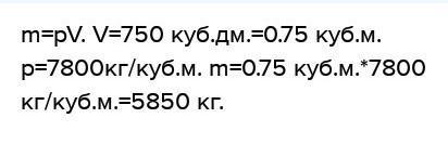 V=750 куб. дм.=0.75 куб. м. p=7800кг/куб.м.