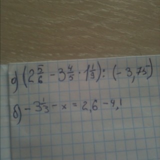 (2 frac{5}{6}-3 frac{4}{5}*1 frac{1}{9}):3.75= (frac{17}{6}- frac{19}{5}* frac{11}{9}):3 frac{75}{100}=( frac{17}{6}- frac{209}{45}): frac{375}{100}=
