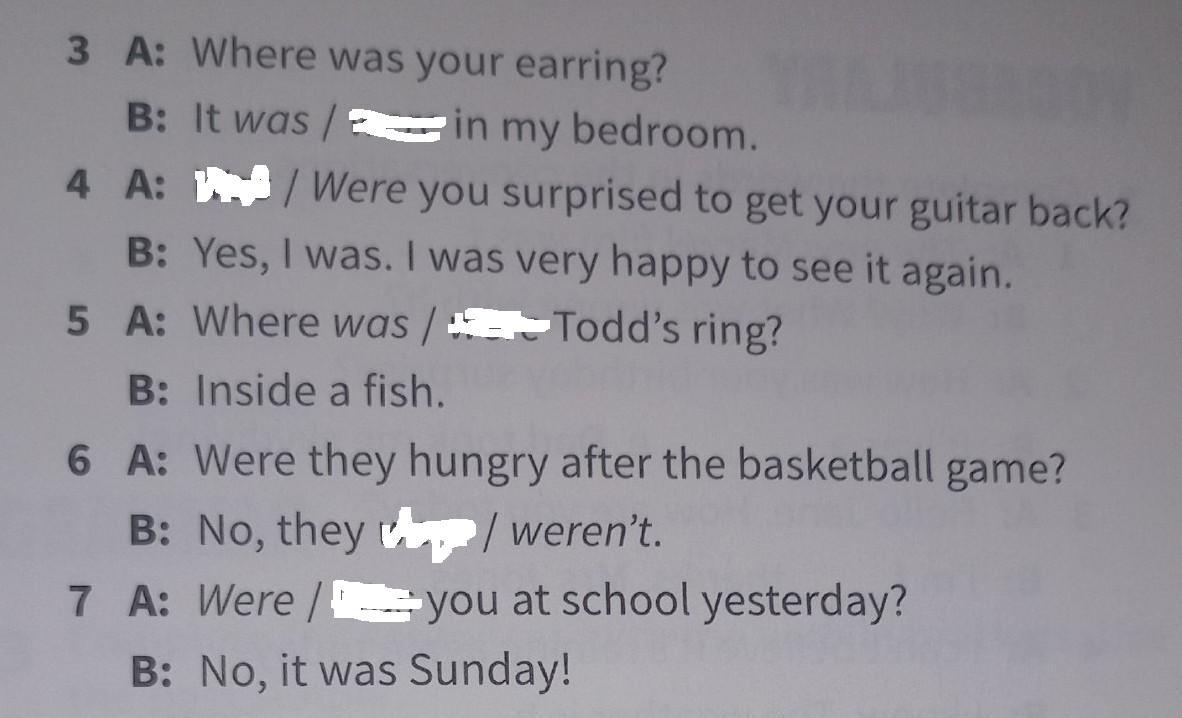 7 A: Were you at school yesterday?