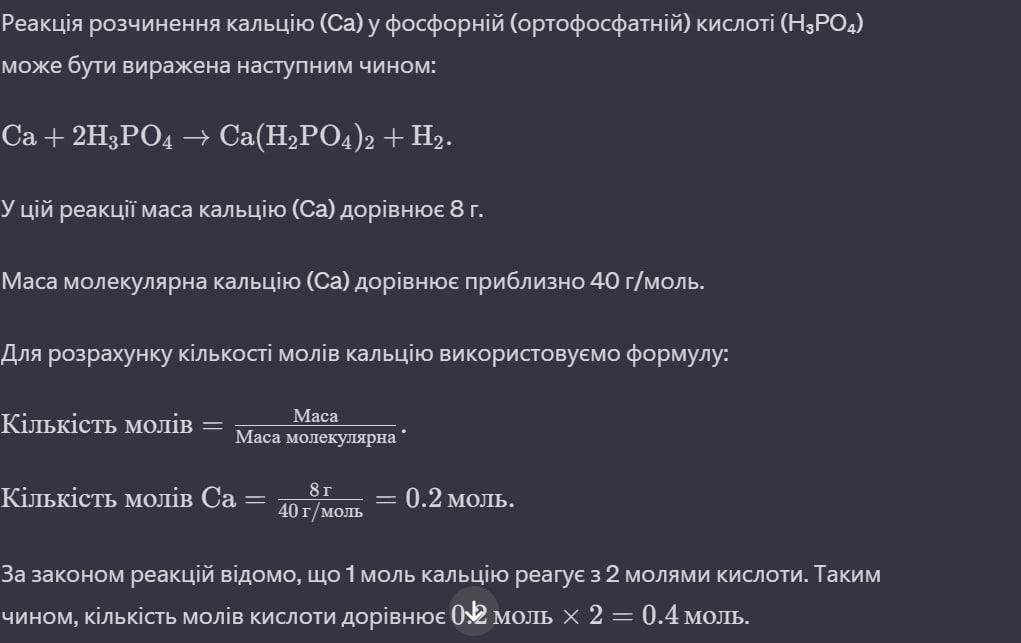ОЧЕНЬ СРОЧНО, УМОЛЯЮ, 100 БАЛЛОВ ДАМ Обчисліть об'єм газу (н.у.), який виділиться при розчиненні 8г кальцію в ортофосфатній кислоті.