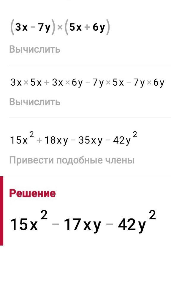 3) (3х – 7у)(5х + 6у) .