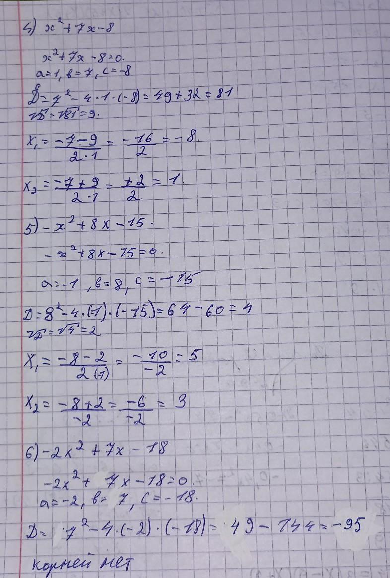 4)х^2+7х-8=1(х+8)(х-1)