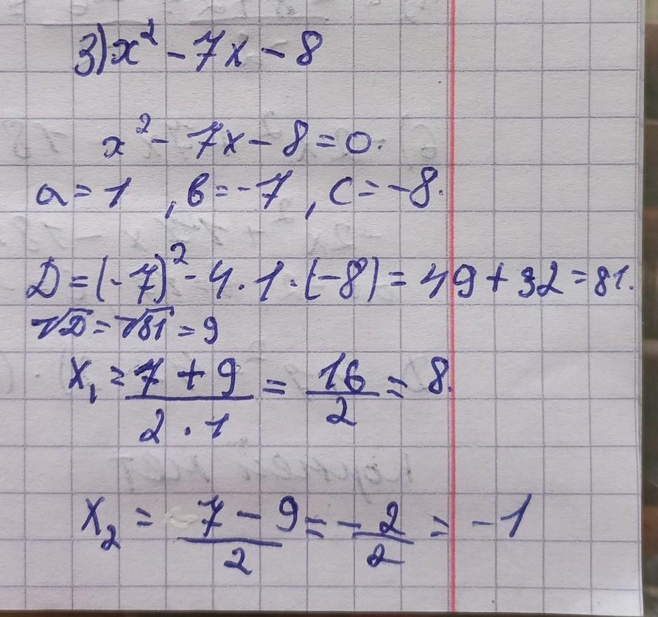 3) х^2-7х-8=1(х-8)(х+1)