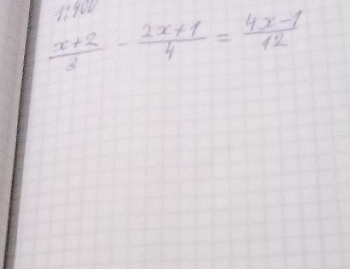 (х + 2)/3 - (2х + 1)/4 = (4х - 1)/12 | * 12