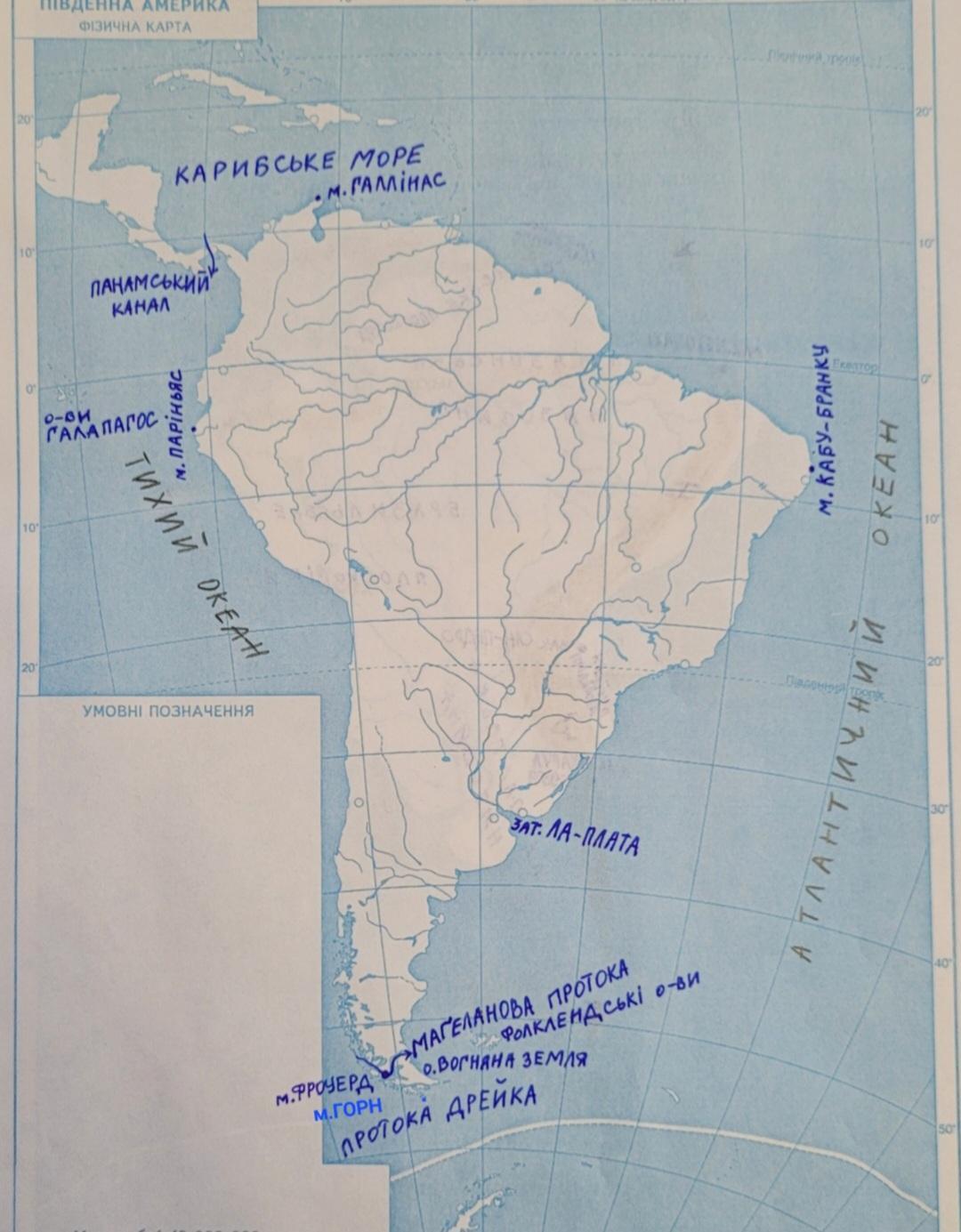 На контурній карті позначте миси, гори, моря, затоки, пустелі, вулкани, протоки, острови, низовини й найвищу точку Південної Америки Пожалуйста даю 30 баллов