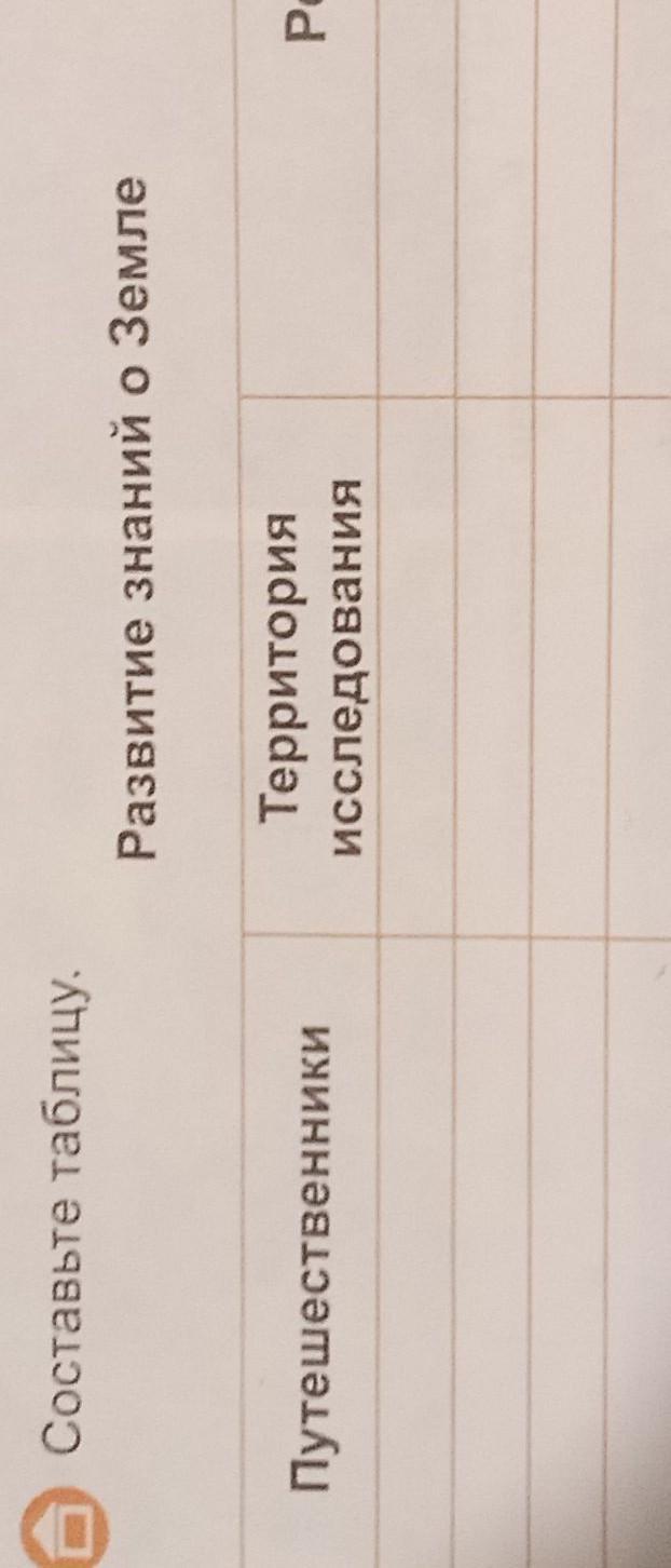 составьте таблицу развитие знаний о земле Путешественники Территории исследования Результат
