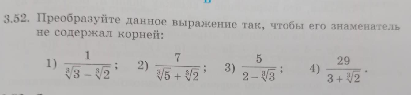 3.52. Преобразуйте данное выражение так, чтобы его знаменатель не содержал корней!!!