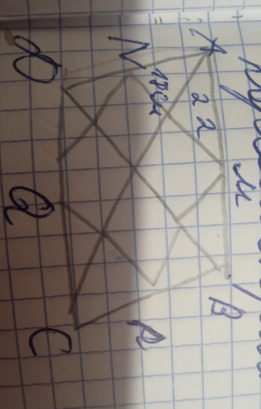 дано діагональ чотирикутника 18 і 22 см знайти параллеграм вершини якого