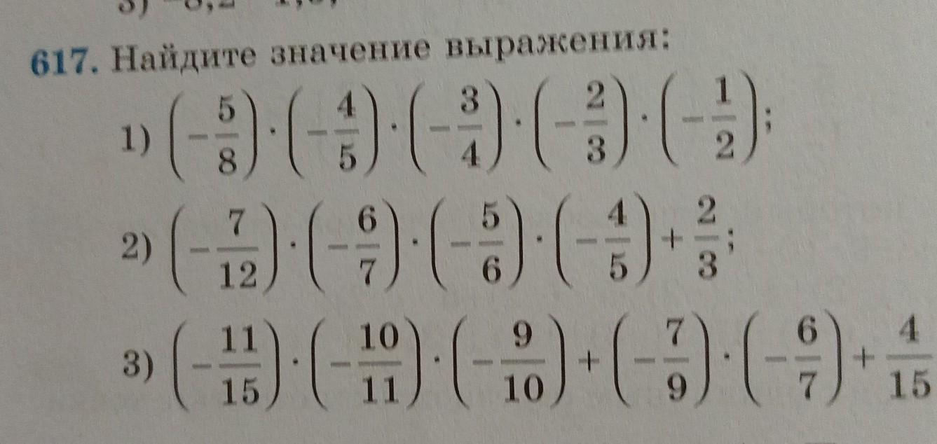 617. Найдите значение выражения: 00000 2 7 2 2 (-2)·(- 9) (-3) (3) 3 2) 12 5 2 11 » ( ) ( ) ( ) ( ) (94 3) 15 7 15