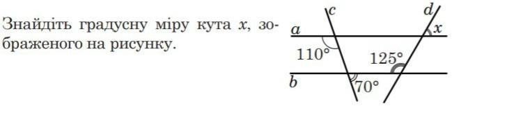 Знайдіть градусну міру кута х, зо- браженого на рисунку. d/ x a 110° b 125° 70°(даю 40 балів срочно)