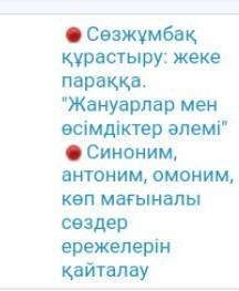 Сөзжұмбақ құрастыру: жеке паракка. "Жануарлар мен өсімдіктер әлемі" Синоним, антоним, омоним, көп мағыналы сөздер ережелерiн кайталау