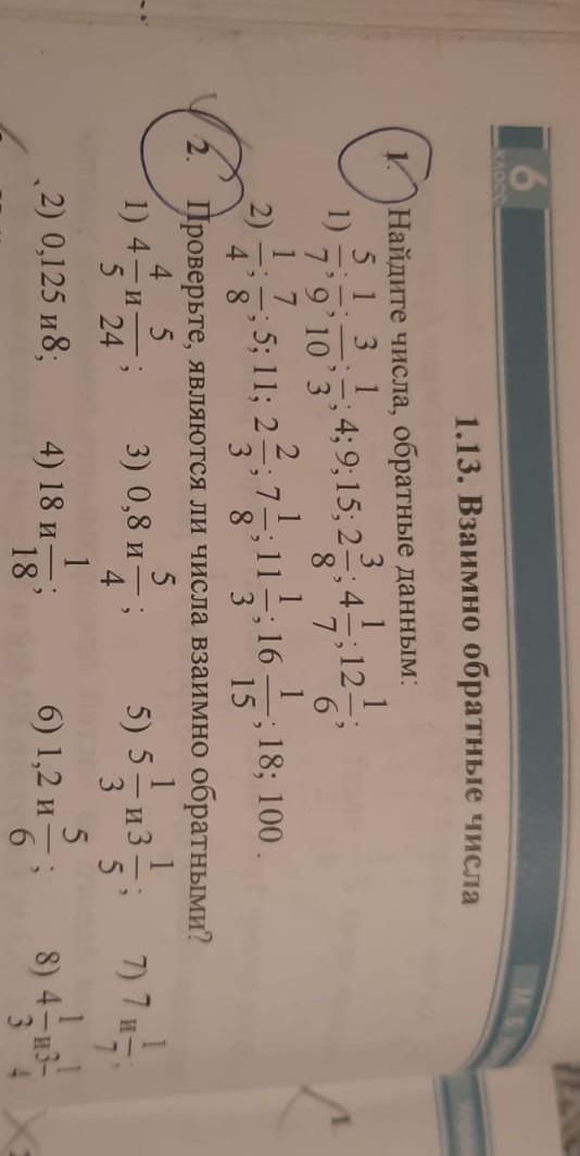 6) 1,2 = 12/10 = 6/5 і 5/6 - обратні;