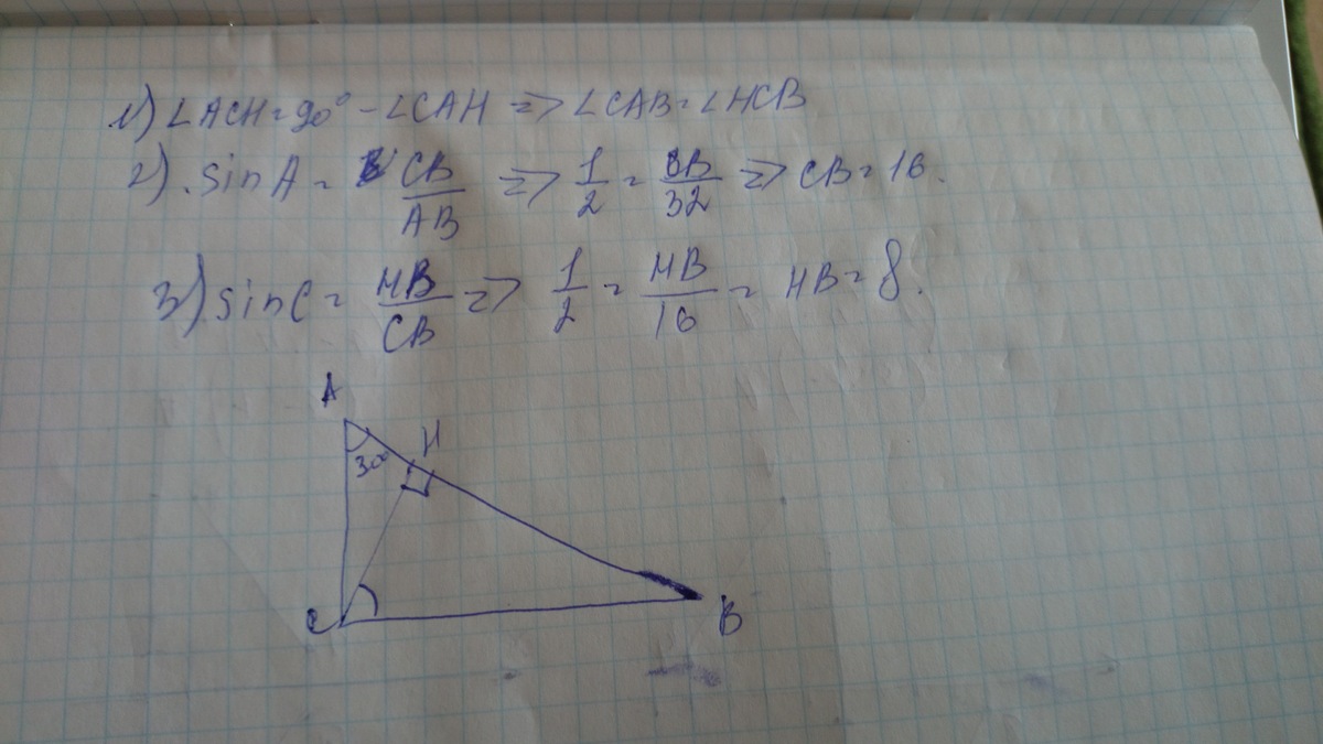 гипотенузу. BCˆ2 = BH·AB. Отсюда ВН = ВСˆ2/АВ. Так как угол А равен 30°,