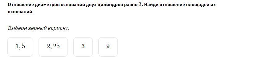 Объяснение:Итак, отношение площадей оснований двух цилиндров равно 9.