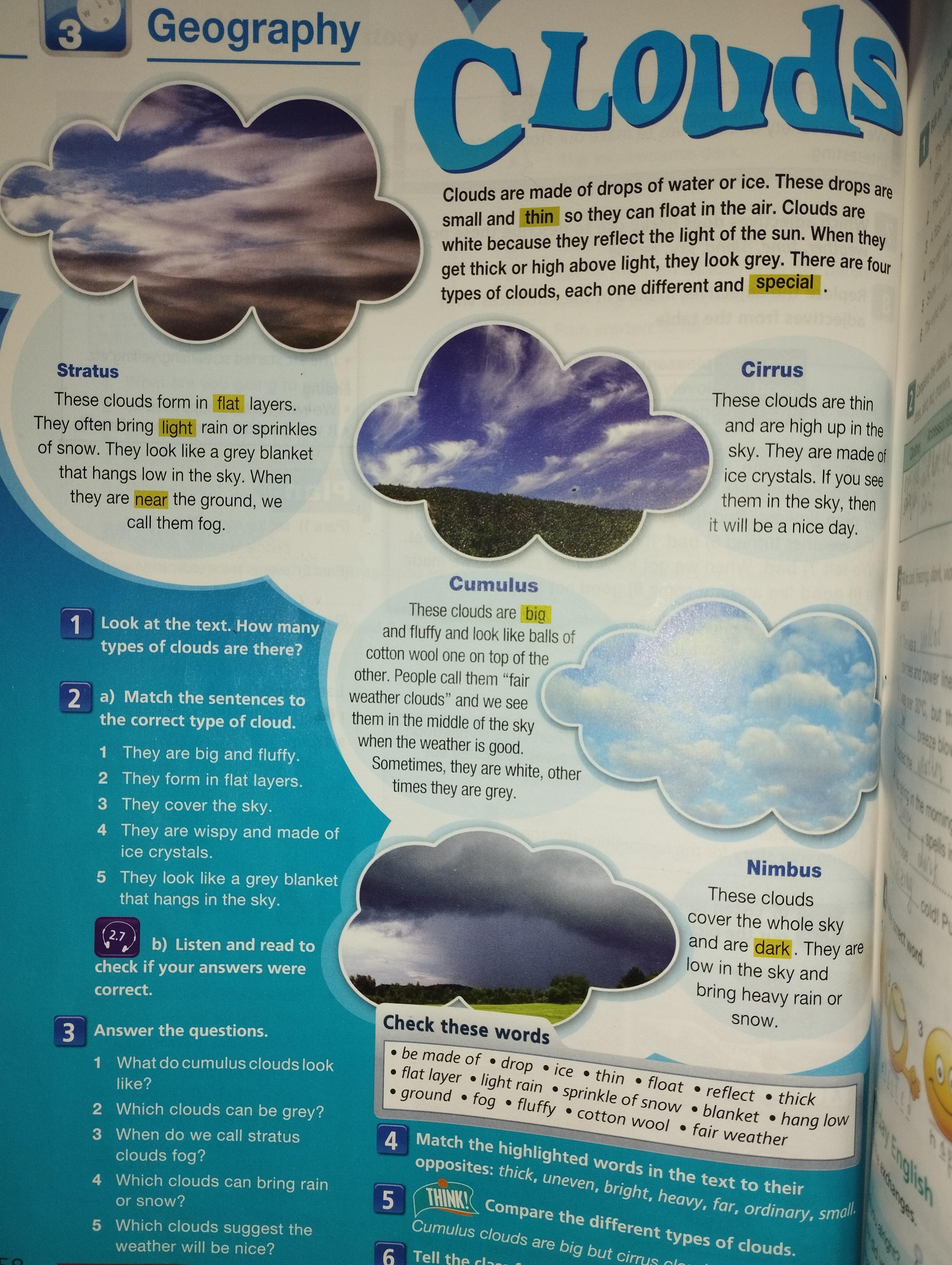 1. Cumulus clouds are fluffy, white clouds with a flat base.