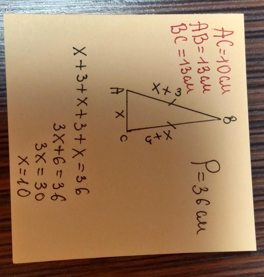 знайдіть сторони рівнобедреного трикутника, якщо бічна сторона на 3 см більша за основу, а периметр трикутника дорівнює 36 см.