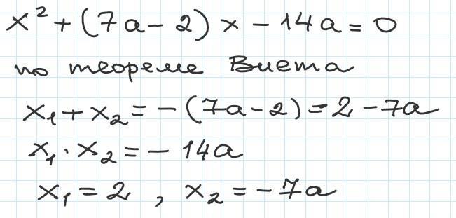 Решите уравнение x² +(7a - 2) x - 14а = 0 относительно пере- - менной х. РЕШИТЕ НЕ ДИСКРИМИЗАНТОМ